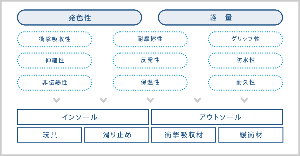 弾力性、発色性にすぐれ、軽量で表現力豊かな素材をつくります。